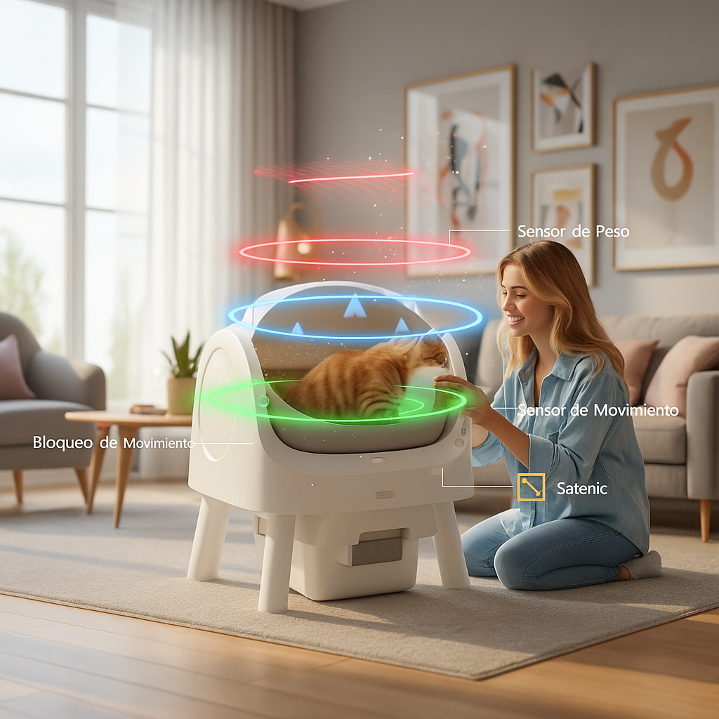 Sí, el Cavari™ AutoScooper cuenta con sensores inteligentes que detienen la limpieza si tu gato se acerca, garantizando total seguridad.